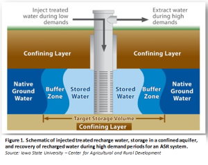 With the construction of the ASR well UWU will be able to store excess water underground in an aquifer during the low-water demand winter months and extract it during the high-water demand summer months. The ASR well will provide an important tool for UWU to manage peak water usage and to ensure UWU has ample supply for meeting the water needs of our growing community. Figure 1 below shows a visual representation of an ASR well operation for your reference.